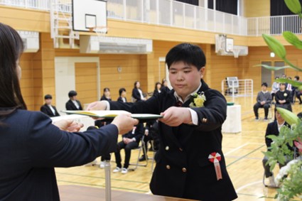 【全校】 令和8年3月10日に令和7年度卒業証書授与式が行われ、小学部5名、中学部6名、高等部14名の児童生徒が卒業しました。校長先生から証書をもらい、卒業生全員がとても誇らしげでした。これまでの活動の様子をまとめた動画「私たちのあゆみ」が流されると、みんなの成長の様子が改めて分かり、胸に来る人...