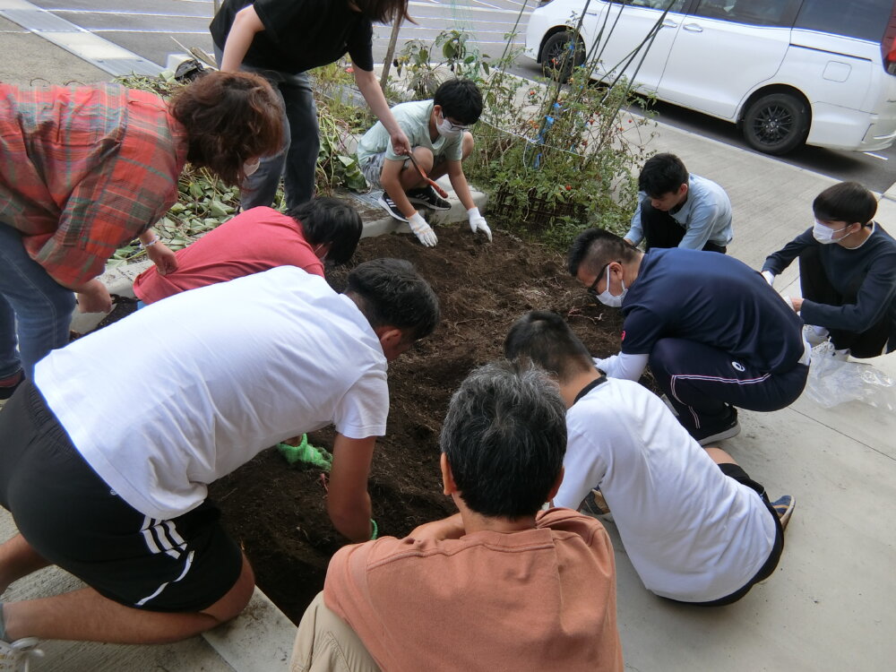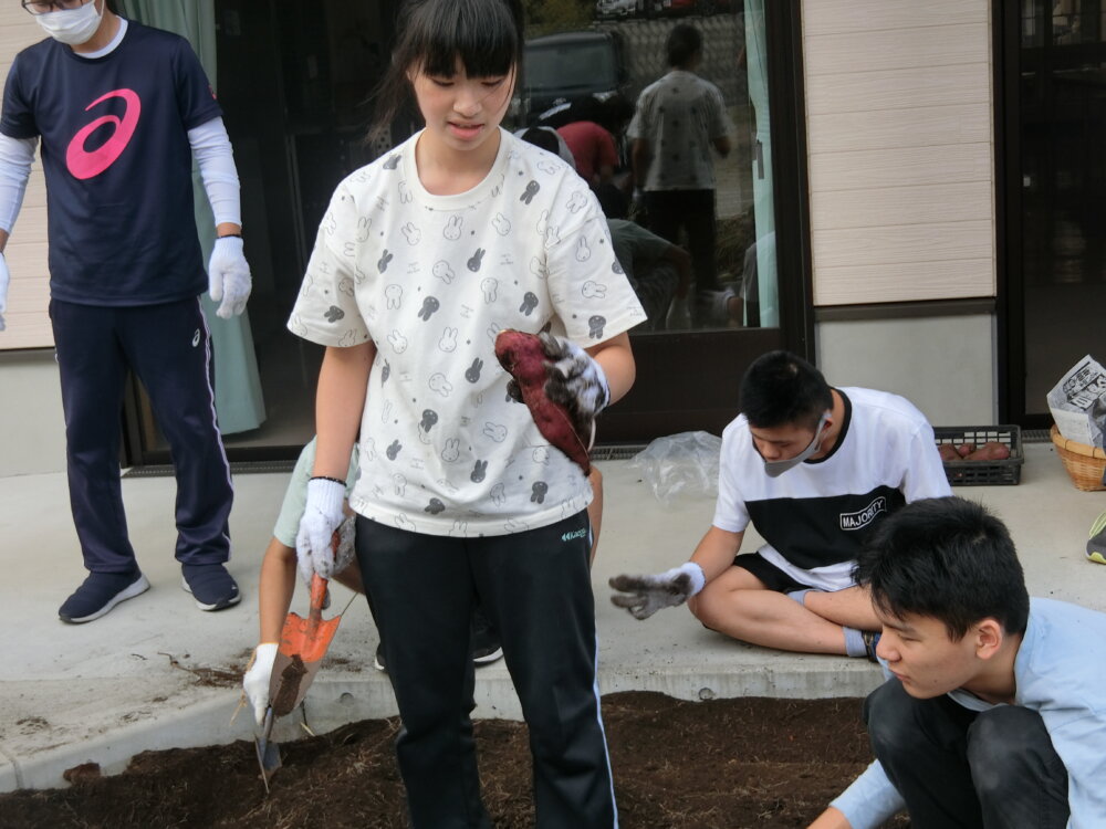 10月3日(火) 5月に苗を植えたお芋が育ってきたので、みんなで芋掘りをしました。大きな芋が土の中から見えると「でっかいな~」と思わず声を上げる舎生も。芋の大きさに驚きながら収穫しました。「焼き芋にして食べたい」という舎生からのリクエストがあったので、今年もみんなで焼き芋にして食べることにしました。その日が待ち遠しいです!