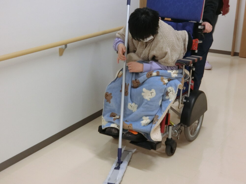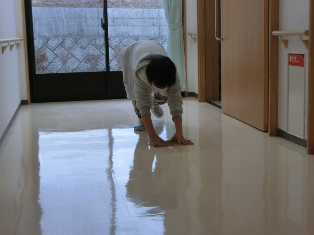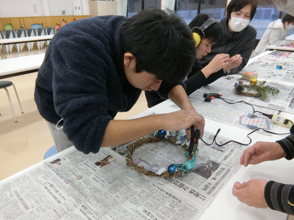 12月11日(月)の愛舎日(大掃除)とクリスマスリース作りをしました。「愛舎日は雑巾掛けがしたい」と舎生から意見が出され、今回は雑巾掛けをすることにしました。合言葉の『ゆかはピカピカ』『からだはホカホカ』を全員で確認し、指導員も一緒になってみんなで楽しみながら寄宿舎の廊下をきれいにしました。その後、来週のクリスマス会に向けてリース作りをしました。もみの木の葉っぱをつけてカッコよく仕上げる舎生。青色をベースに様々な形の装飾を組み合わせながらきれいに仕上げる舎生。リボンや星などの装飾を加えながらクリスマス感を出すように仕上げる舎生など、一人一人がオリジナリティを出しながら一生懸命作っていました。来週のクリスマス会が楽しみです!