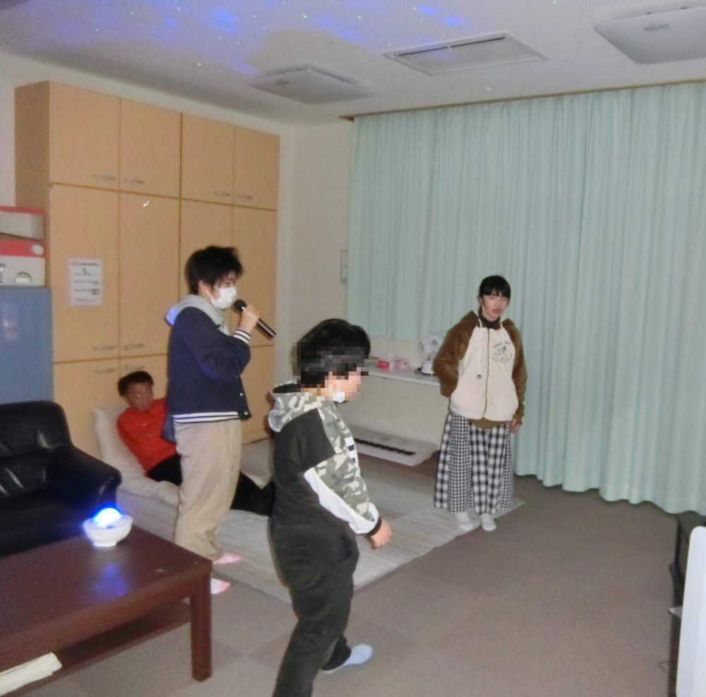 山梨県立やまびこ支援学校 > 学校活動の様子 > 寄宿舎の様子 > 【寄宿舎】活動日 【寄宿舎】活動日 投稿日:2024年2月27日 最終更新日:2024年11月16日カテゴリー: 寄宿舎の様子 2月21日(水)は寄宿舎の活動日でした。みんなからリクエストのあったお菓子やジュースを買いに、近くのセブンイレブンに出かけました。夕食後の自由時間に、買ってきたお菓子をみんなで分け合って食べました。そして、カラオケの準備をしてみんなで楽しく歌いました。テンションは上がり、ポーズを決めたり、ニコニコしたり・・・。今年度の寄宿舎生活も残り少なくなってきた中で、楽しい思い出がまた一つ増えたことと思います。