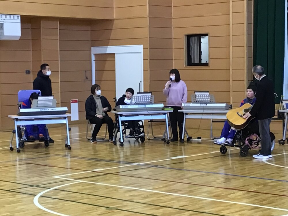 山梨県立やまびこ支援学校 > 学校活動の様子 > 3.高等部の様子 > 令和5年度 今日の一コマ!vol.59【高等部】音楽発表会(2月28日) 令和5年度 今日の一コマ!vol.59【高等部】音楽発表会(2月28日) 投稿日:2024年2月29日 最終更新日:2024年11月16日カテゴリー: 3.高等部の様子 2月28日(水)高等部では、「音楽発表会」を行いました。2学期から3学期にかけて授業で取り組んだ曲グループごとに演奏しました。器楽合奏『きらきら星変奏曲』や歌唱『ビリーブ』など、友達の前での発表に少し緊張した生徒もいたようでしたが、どの生徒も一生懸命に演奏し、日頃の練習の成果を発揮することができました。