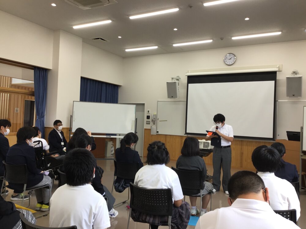 山梨県立やまびこ支援学校 > 学校活動の様子 > 3.高等部の様子 > 令和6年度 今日の一コマ!【高等部】第1回産業現場等における実習報告会 令和6年度 今日の一コマ!【高等部】第1回産業現場等における実習報告会 投稿日:2024年6月11日 最終更新日:2024年11月16日カテゴリー: 3.高等部の様子 5月30日(木)、第1回産業現場等における実習報告会が行われました。それぞれの実習の様子をビデオで見て、実習の反省とこれからの学校生活でがんばりたいことを発表しました。