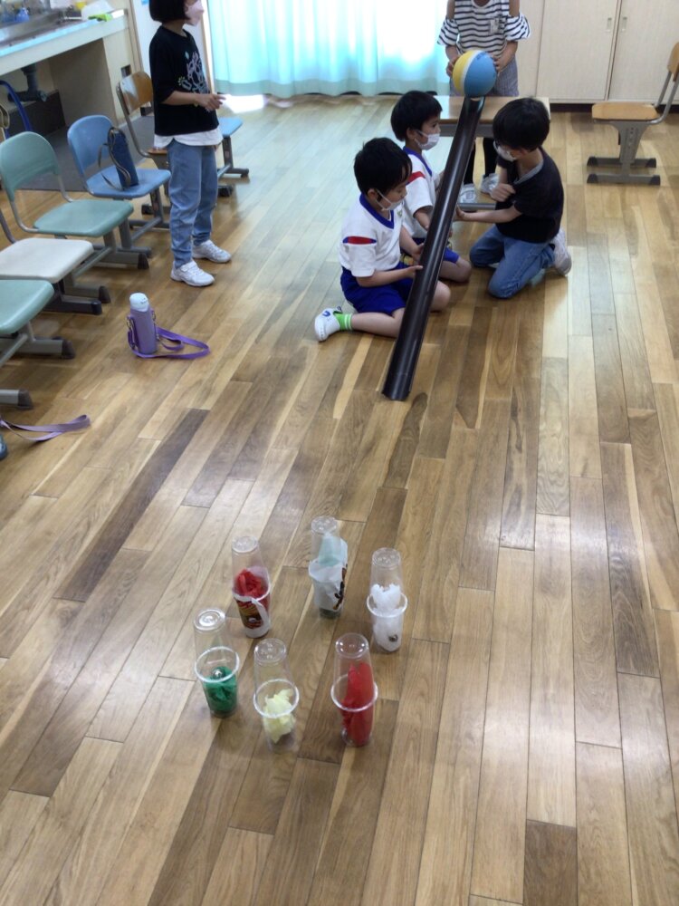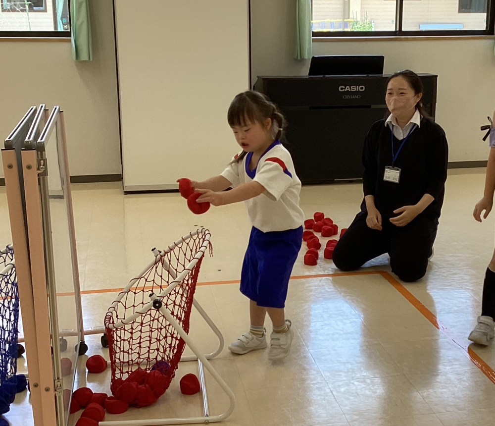 1年生グループは、箱倒しと玉入れをしました。一位になるかどうか、ゴールの速さや玉の多さに注目し、大盛り上がりでした。