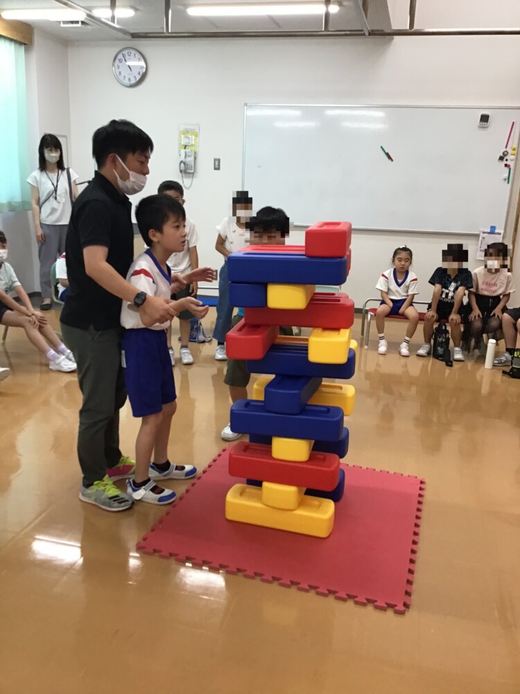 3,4年生グループは、チームの名前を皆で決めたり大型ジェンガをしたりしました。応援し合ったりみんなで笑ったり、楽しい時間を共有することができました。