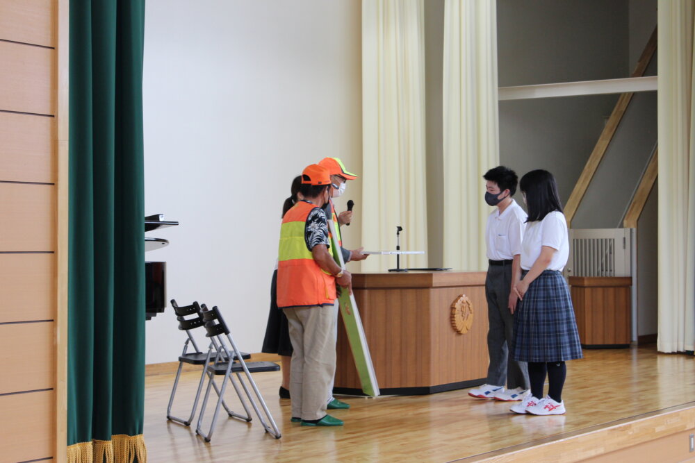 東部猟友会の方から動物に関する本の寄贈があり、代表の生徒が受け取りました。大切に使わせていただきます。ありがとうございました。
