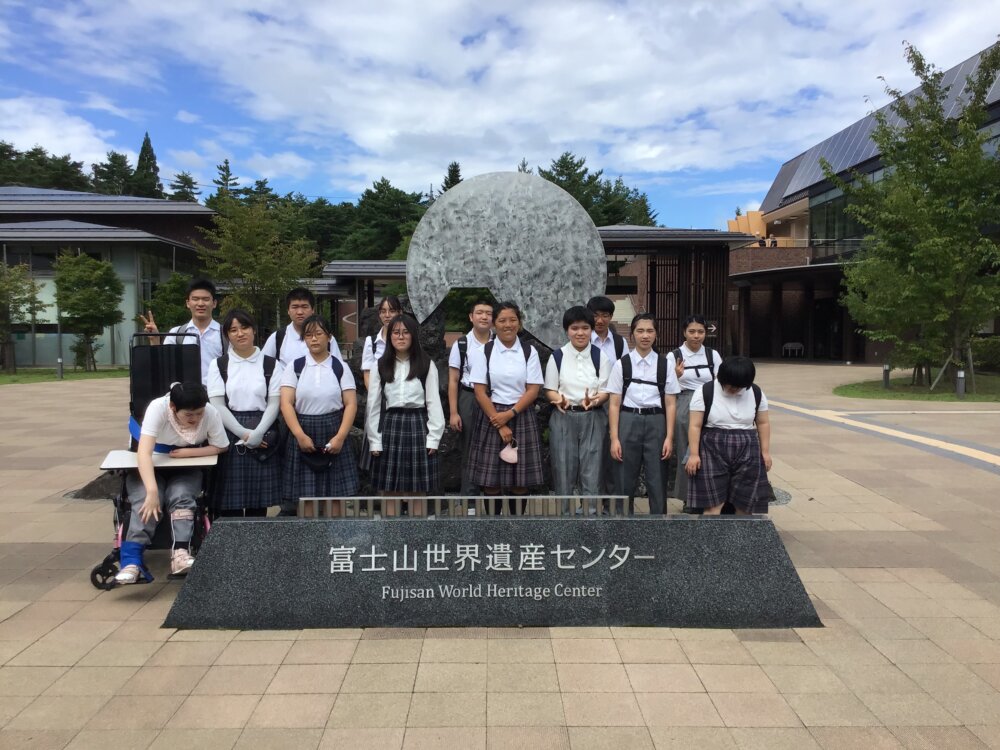 高等部2年生は、9月17日(火)に「総合的な探究の時間」の校外学習で富士河口湖町にある「富士山世界遺産センター」へ行ってきました。授業で調べた富士山の「歴史」「植物」「動物」について、グループごとに見学を行い、学習の成果を確認しました。自分たちが調べたことの他にも「気候」や「溶岩」など新たな発見をし、興味深く見学する様子がみられました。昼食には富士山カレーを食べ、刺激的な1日となりました。