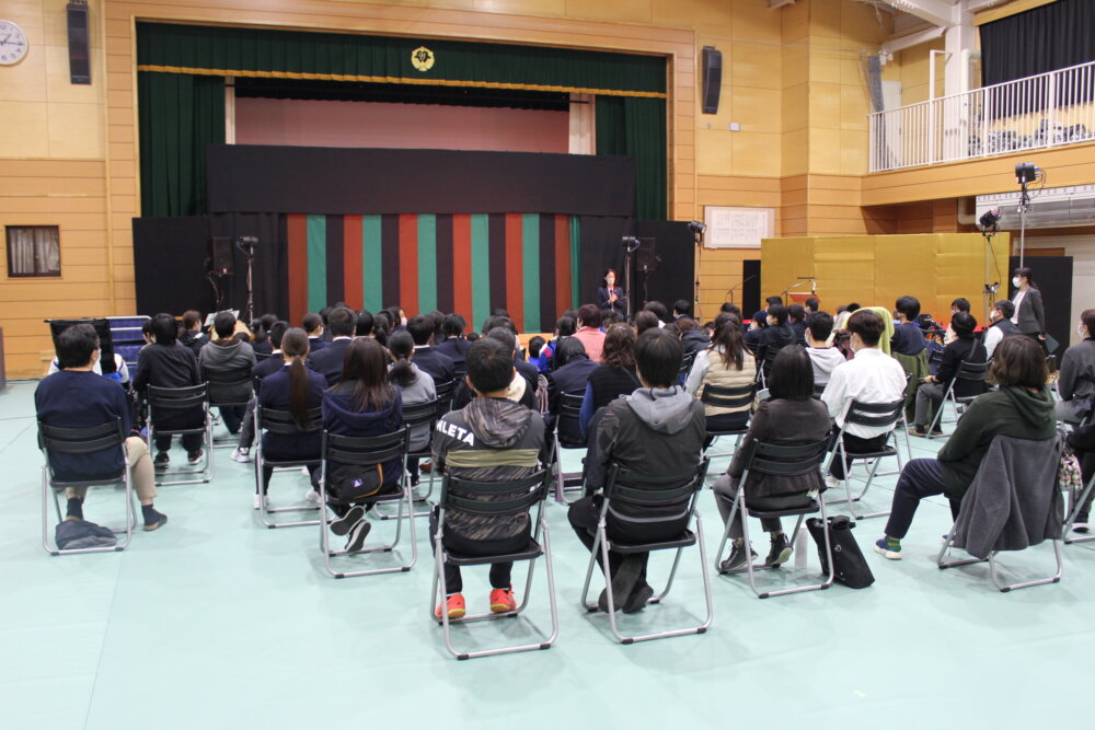 「糸あやつり人形一糸座」による公演が本校で行われ、全校児童生徒が「東海道中膝栗毛」や「橋弁慶」「八百屋お七」などを鑑賞しました。「東海道中膝栗毛」では代表の生徒が実際に人形を操り共演する場面もつくっていただきまた。大月に伝わる三人遣いの笹子追分人形とは異なり、10数本の糸で人形を操る人形浄瑠璃でした。繊細な動きの中に強さや愛嬌などの感情が込められており、想像よりもずっとリアルでした。人形遣いと人形が一体となっていることに感動する子。人形に吹き込まれた命のようなものを感じながら観ていた子。江戸っ子の気質に思わず笑いが起こった子。三味線の音色に乗せて語る太夫に心奪われた子。様々な魅力を感じながら日本の伝統芸能に触れました。