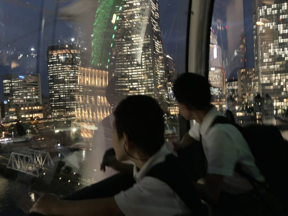 9月25日(木)、9月26日(金)に修学旅行へ行きました。1日目は東京都の国立科学博物館、横浜市のヨコハマエアキャビンへ行きました。国立科学博物館ではたくさんの展示の中から事前学習で確認した動物の写真を撮るといったミッションに取り組みました。実物のはく製を前に「大きい!」と驚いた様子の生徒たちでした。ヨコハマエアキャビンでは横浜みなとみらいの夜景を一望でき、コスモワールドの観覧車のイルミネーションを「花火みたい」と表現していました。美しい夜景の中桜木町からホテルまで海風を感じて散策し、ホテルにてゆっくり休みました。