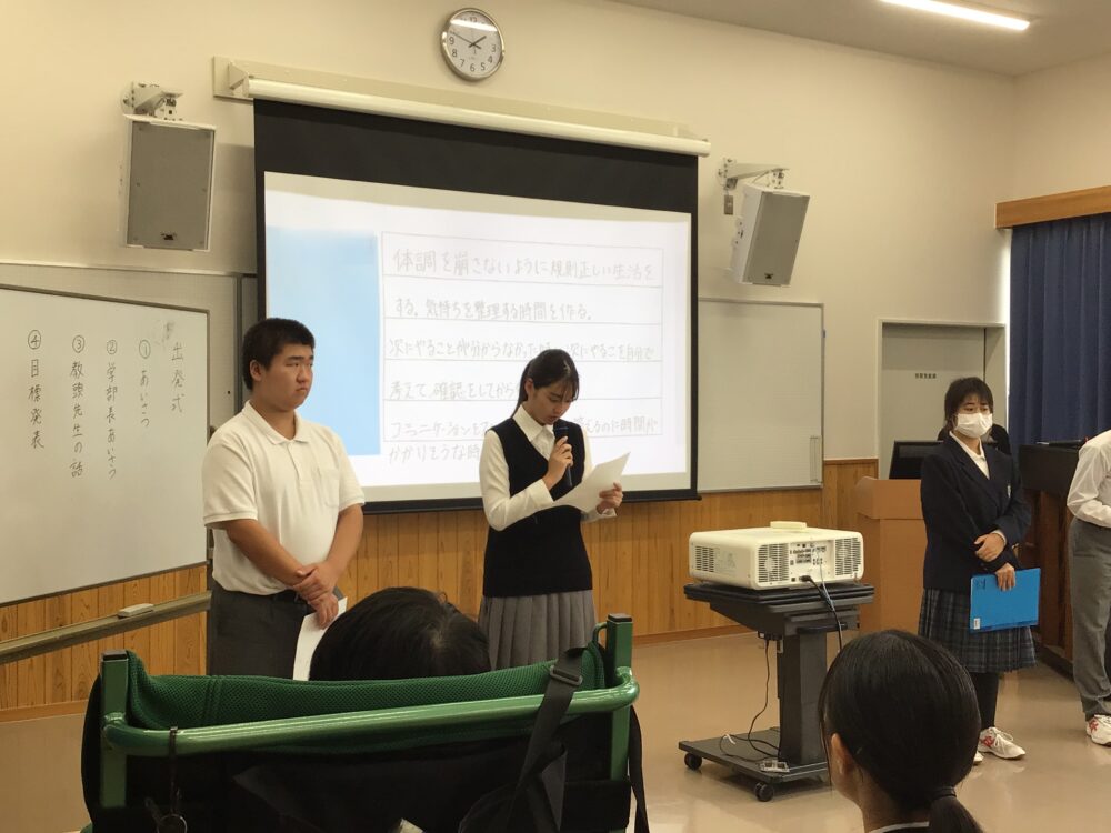 10月3日(金)に第2回産業現場等における実習の出発式を行いました。生徒たちは、前回の実習の反省をもとに、目標をたて準備をしてきました。