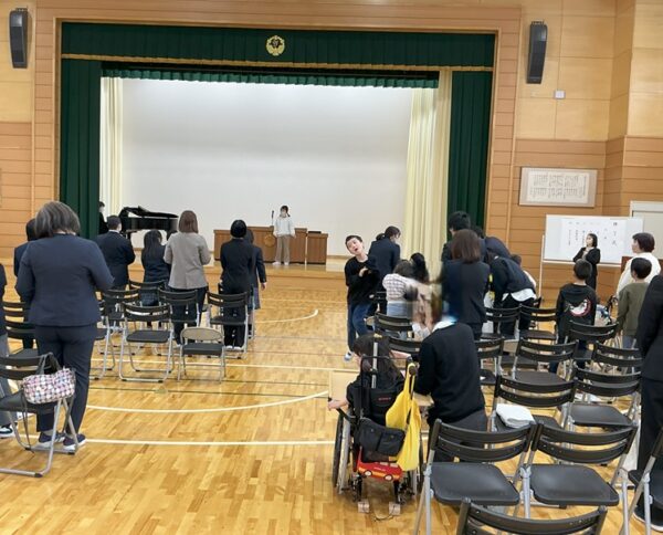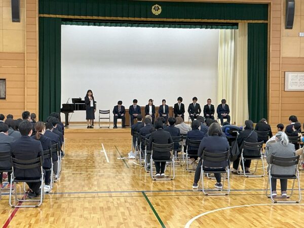 令和8年3月25日に令和7年度修了式・離退任式が行われました。各学部代表の児童生徒が修了証を校長先生から受け取り、その後、小学部の児童が指揮をして、今年度の締めくくりとして、全員で校歌を歌いました。