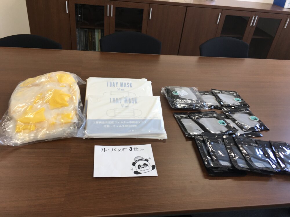 本日、ル・パンダ3世よりマスクをいただきました。各学部で使わせていただきます。誠にありがとうございます。