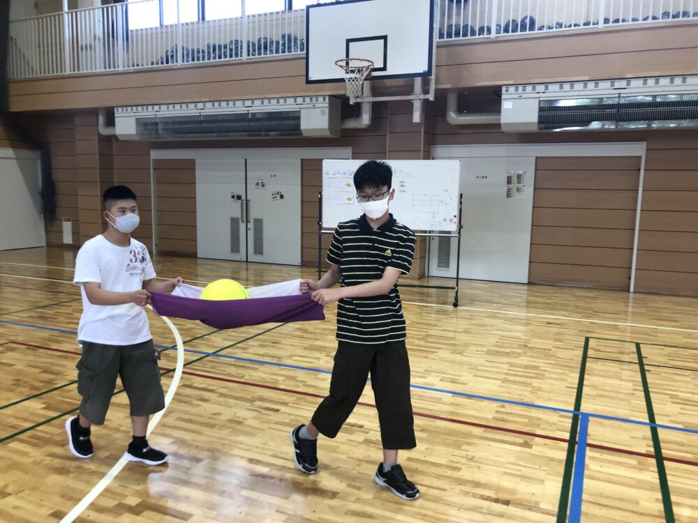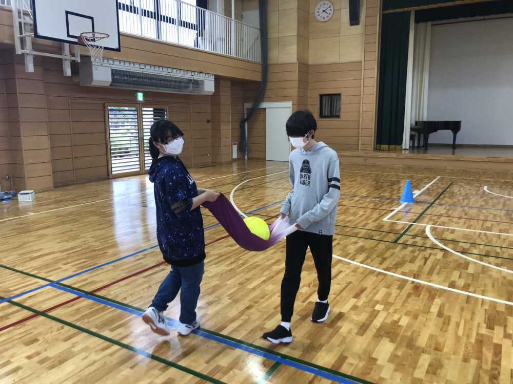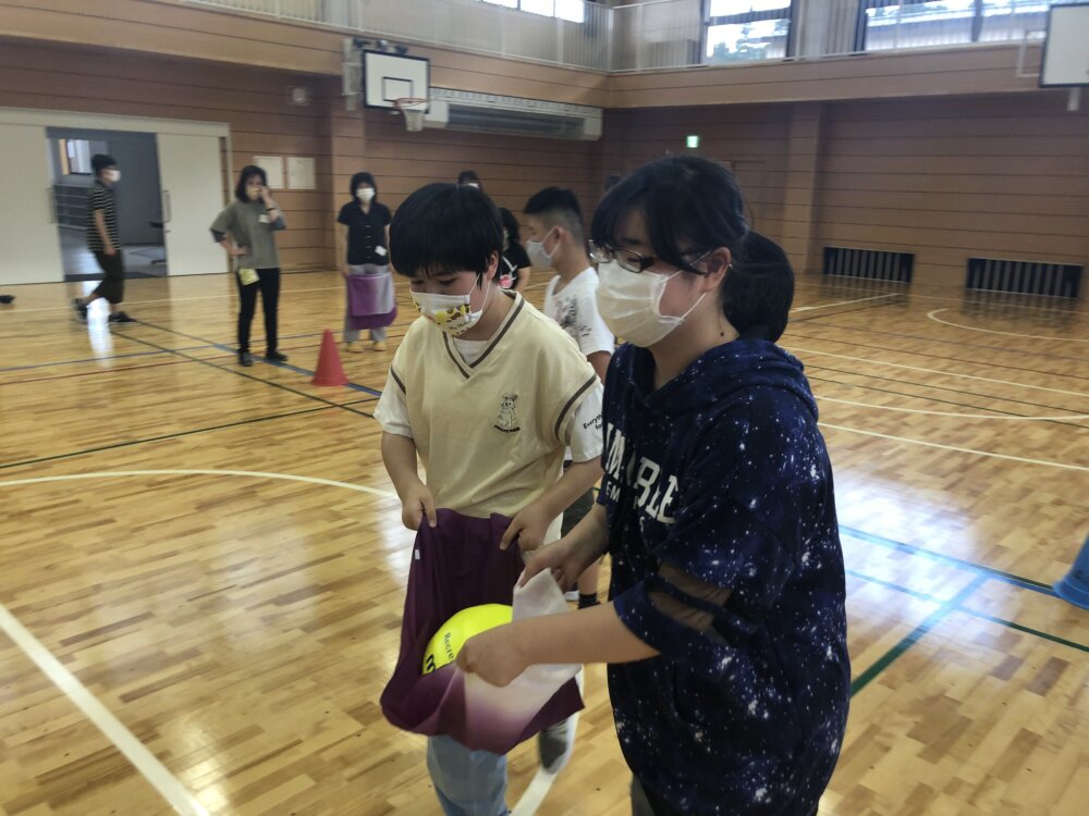 第1回の活動日として、体育館で『ハンカチ落とし』と『ボール運び』をしました。