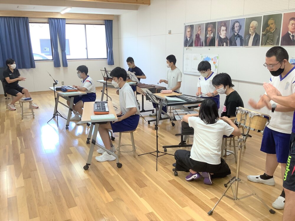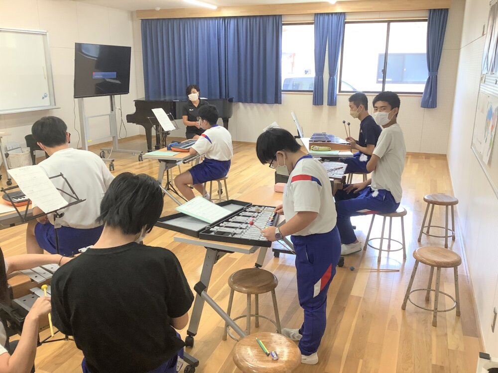 1学期最後の授業での音楽発表会!体育館は暑いため、4つのグループが各教室に分かれてリモートで発表をしました。