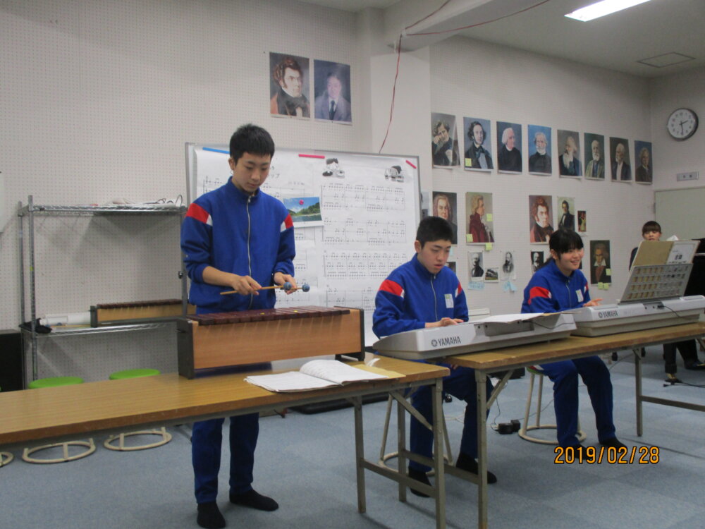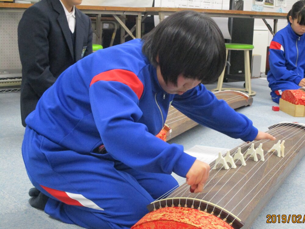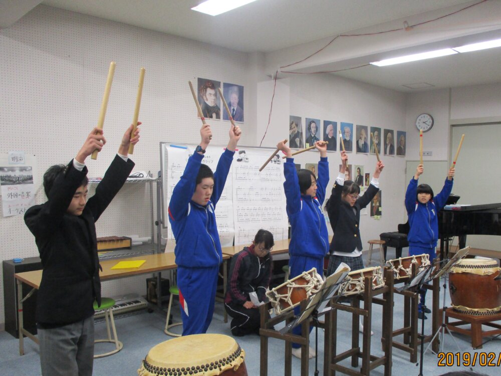 2/28(木)音楽の授業において、普段、授業で取り組んできたことをみんなの前で発表しました。手作り太鼓、箏、和太鼓、リーコーダーの各グループに分かれての発表は、緊張しながらも精一杯自分を表現しました。