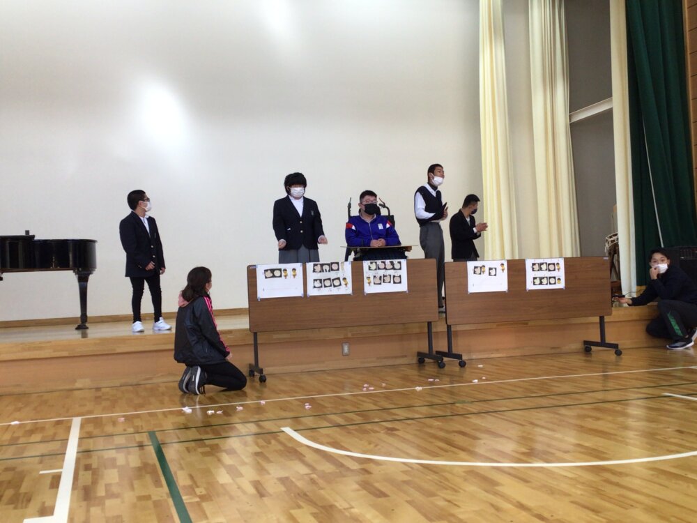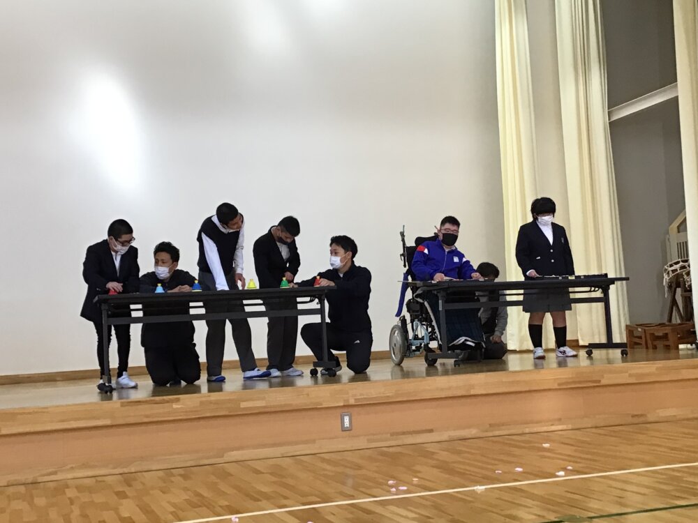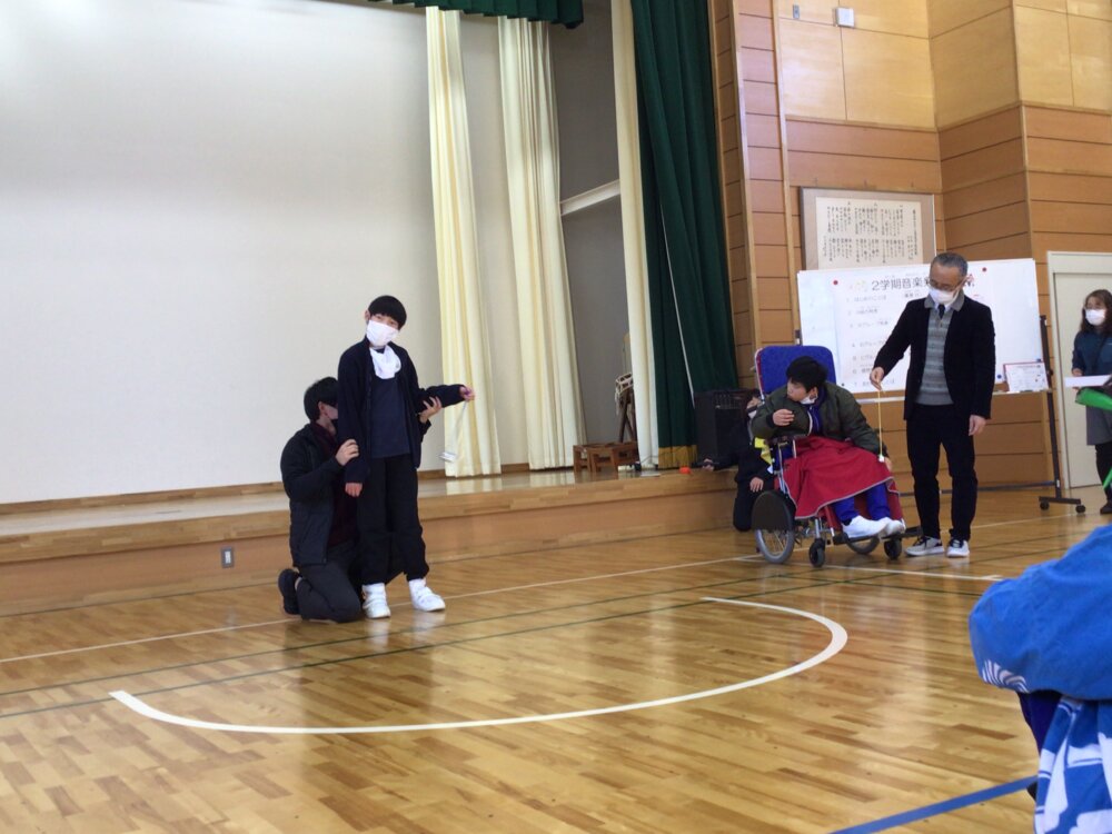山梨県立やまびこ支援学校 > 学校活動の様子 > 3.高等部の様子 > 今日の一コマ! vol.66 高等部【音楽発表会】(12月19日) 今日の一コマ! vol.66 高等部【音楽発表会】(12月19日) 投稿日:2022年12月19日 最終更新日:2022年12月19日カテゴリー: 3.高等部の様子 体育館で4つのグループに分かれ、2学期に学習した身体表現や和太鼓、器楽合奏の発表をしました。 3年生との最後の発表会は、心に残る素敵な音楽会になりました。