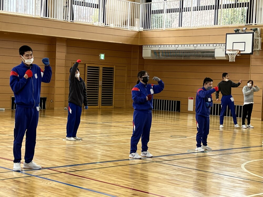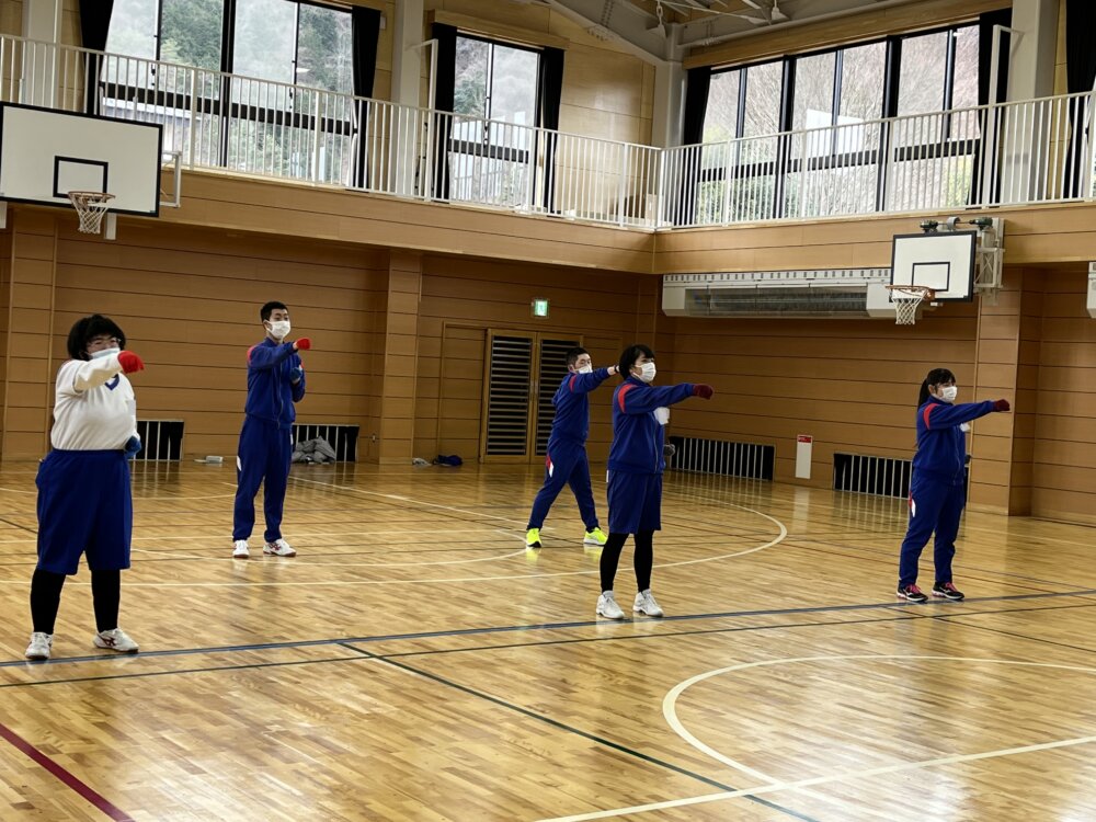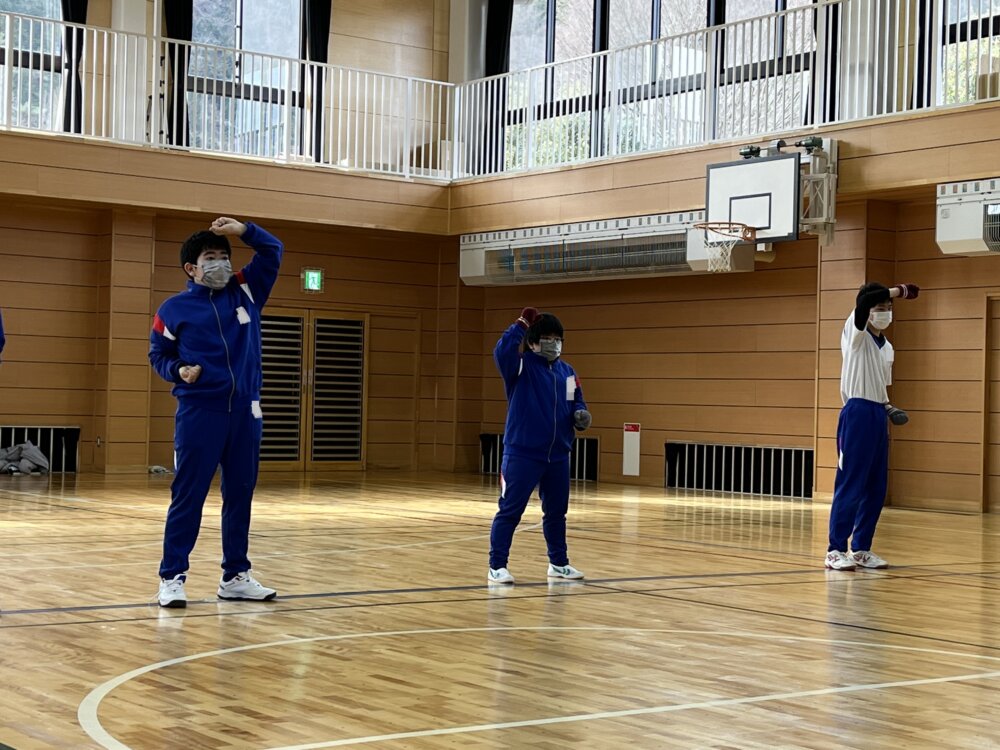 山梨県立やまびこ支援学校 > 学校活動の様子 > 3.高等部の様子 > 今日の一コマ! vol.74 高等部【体育】(2月3日) 今日の一コマ! vol.74 高等部【体育】(2月3日) 投稿日:2023年2月3日 最終更新日:2023年2月3日カテゴリー: 3.高等部の様子 【1年生:①】【1年生:②】【2年生:①】【2年生:②】【3年生:①】【3年生:②】【3年生:③】【3年生:④】 高等部体育A・Bグループは3学期から空手の学習に取り組んでいます。今日は学年ごとに発表をしました。写真は「中段突き」「上段受け」「下段受け」の3つの技を組み合わせた空手ダンスの様子です。