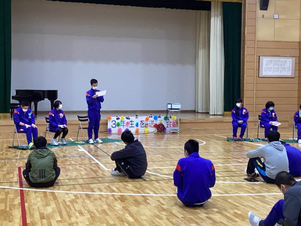 1、2年生が中心になって計画し、準備をしてくれました。ボール運びやパズルのゲームを4つのグループで競い合い、楽しいひとときを過ごすことができました。3年生一人一人の感謝の言葉も感動的でした。