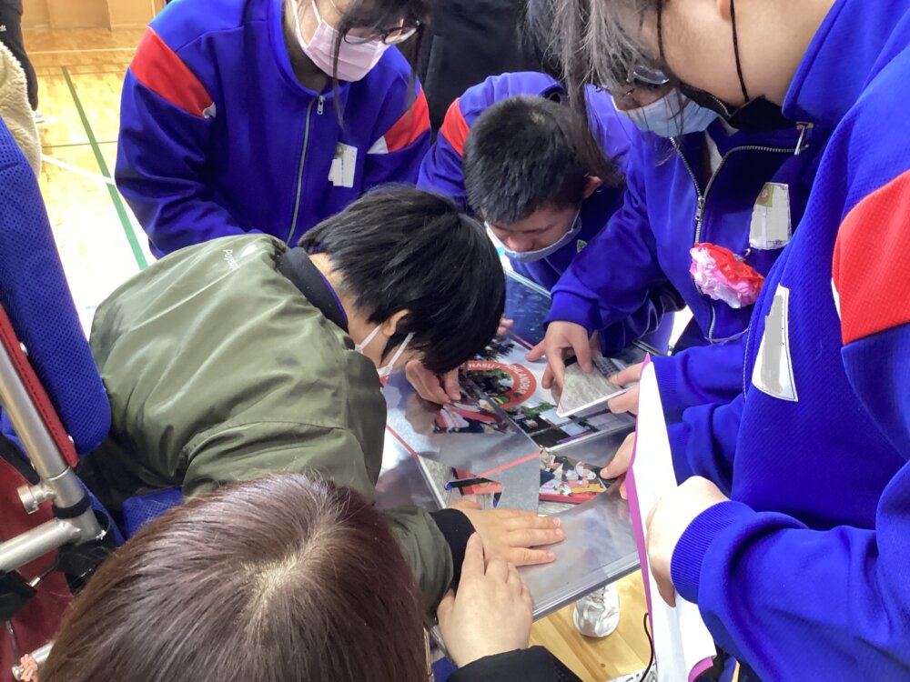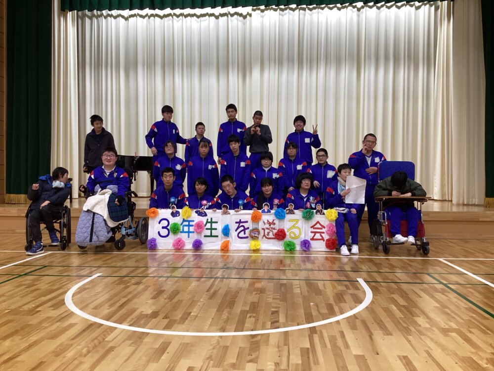 山梨県立やまびこ支援学校 > 学校活動の様子 > 3.高等部の様子 > 今日の一コマ! vol.83 高等部【3年生を送る会】(2月24日) 今日の一コマ! vol.83 高等部【3年生を送る会】(2月24日) 投稿日:2023年2月27日 最終更新日:2023年2月27日カテゴリー: 3.高等部の様子 1、2年生が中心になって計画し、準備をしてくれました。ボール運びやパズルのゲームを4つのグループで競い合い、楽しいひとときを過ごすことができました。3年生一人一人の感謝の言葉も感動的でした。 【教頭先生の話】【レク①】【レク②】【レク③】【レク④】【プレゼント贈呈】【3年生から】【みんな!】